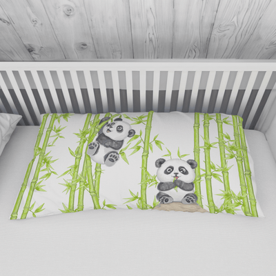 Zwei Pandas und Bambus auf der Vorderseite, viele kleine Pandas auf der Rückseite - diese Wendebettwäsche begeistert Kinderherzen!
